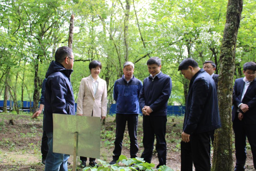 丨林區(qū)黨委書記馮偉(中)一行在公司野生名貴中藥材訓(xùn)育基地神農(nóng)藥園